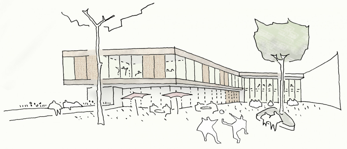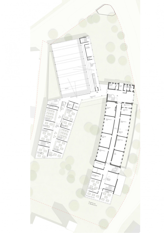 Das bestehende Schulgebäude bleibt in seiner Struktur erhalten. Die zusätzlichen Schulnutzungen werden in einem Neubau westlich des Hauptgebäudes untergebracht.