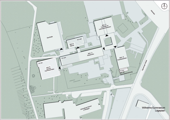 Da der Bedarf an Unterrichtsräumen nicht im Bestand untergebracht werden kann, soll im Süd-Westen ein neuer Fachklassenbau geplant werden. Der Erweiterungsbau mit 11 Unterrichtsräumen wird als Holz-Betonverbundkonstruktion mit vorgefertigten Bauelementen geplant. Beim Bau müssen die NBBW-Kriterien für nachhaltiges Bauen erfüllt werden.