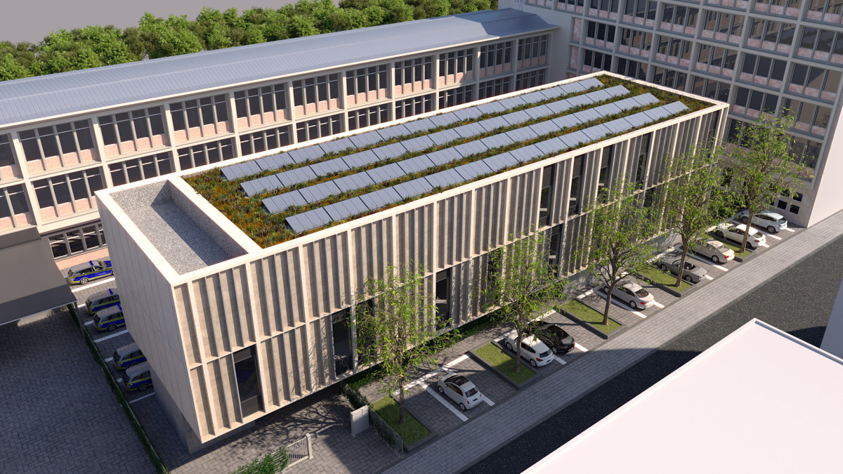 Bestandsgebäudes des Polizeipräsidiums. Der Neubau darf in dieser Situation nicht nur als Ergänzungsbau gesehen werden,