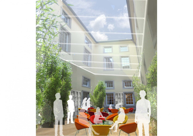 Aufgrund der schalltechnischen Probleme ist es geplant die Büroräume des Rektors und der Kanzlerin in das 2. Obergeschoss zu verlegen. Im 2. Obergeschoss können die Bürobereiche des Rektors und der Kanzlerin entsprechend dem heutigen Standard gestaltet und technisch ausgerüstet werden, was in den historischen Räumen des 1. Obergeschosses nur eingeschränkt möglich ist. Die Rektoratsbüros müssen im Augenblick in einem anderen Gebäudeteil untergebracht werden. Im 2. Obergeschoss mit ca. 500 m² Nutzfläche können diese Abteilungen im Nahbereich des Rektors angeordnet werden.