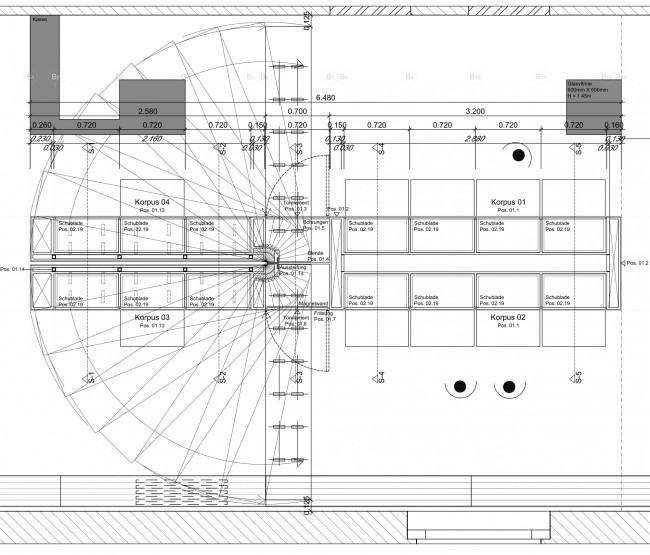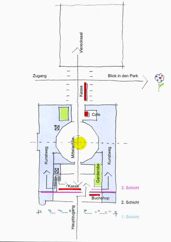 Neukonzeption des kompletten Kassenbereichs getrennt nach den Bedürfnissen der großen Landesaustellung und des Würrtembergischen Kunstvereins im historischen Vierecksaal.