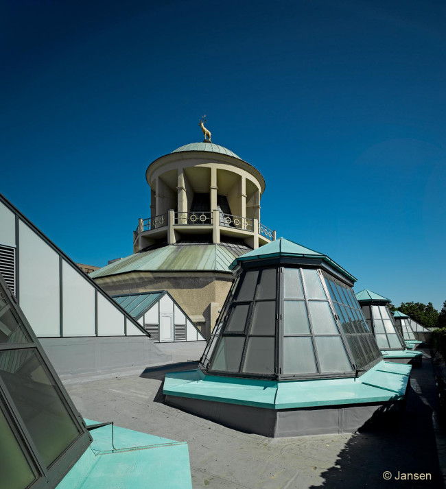 Der historische Bestand umfasst drei Stockwerke. Im Untergeschoss befinden sich Lager- und Werkstatträume, im Erdgeschoß sind Büro- und Ausstellungsräume mit dem großen Kuppelsaal untergebracht, dessen Raumhöhe auch das Obergeschoß überragt. Im Obergeschoß liegen weitere Ausstellungsräume und ein Künstlercafé.