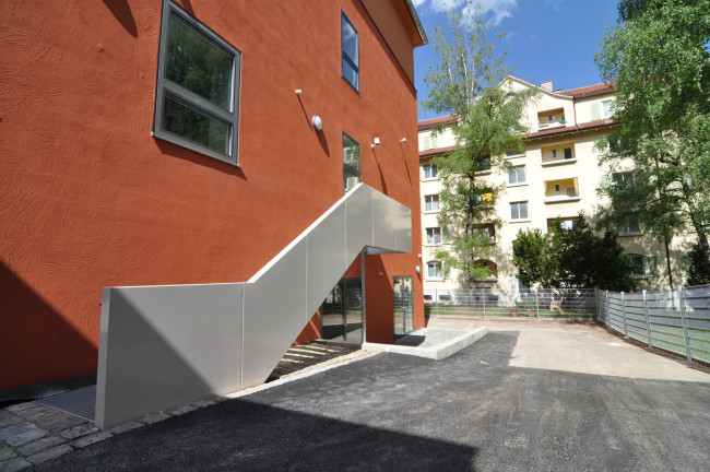 Neugeschaffene Fluchttreppe mit direktem Ausgang zum Hof