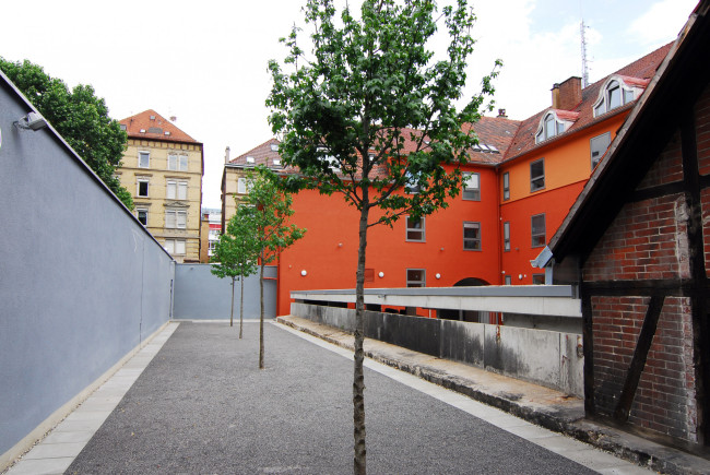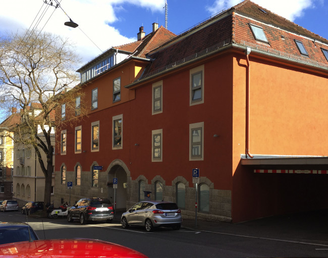 Durch den Umbau eines ehemaligen Werkstattgebäudes auf dem Nachbargrundstück, konnte das Gebäudeensemble um eine Großgarage ergänzt werden, welches im dichtbesiedelten Stuttgarter Westen Kapazitäten schaffte, die für den reibungslosen Betrieb eine wesentliche Rolle spielt.
