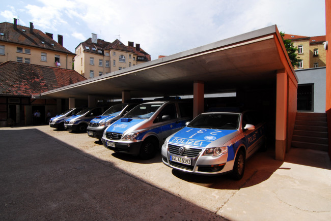 Blick in den Hof zwischen Polizeigroßrevier und Garagengebäude