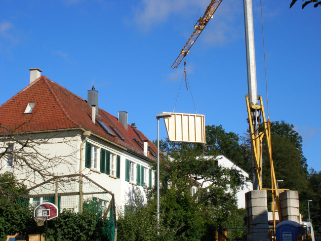 Um die Bauarbeiten für den Anbau zügig durchführen zu können, wurde die Erweiterung aus einer Holzkonstruktion geplant, die in der Werkstatt komplett vormontiert wurde und binnen zwei Tagen vor Ort aufgestellt werden konnte.