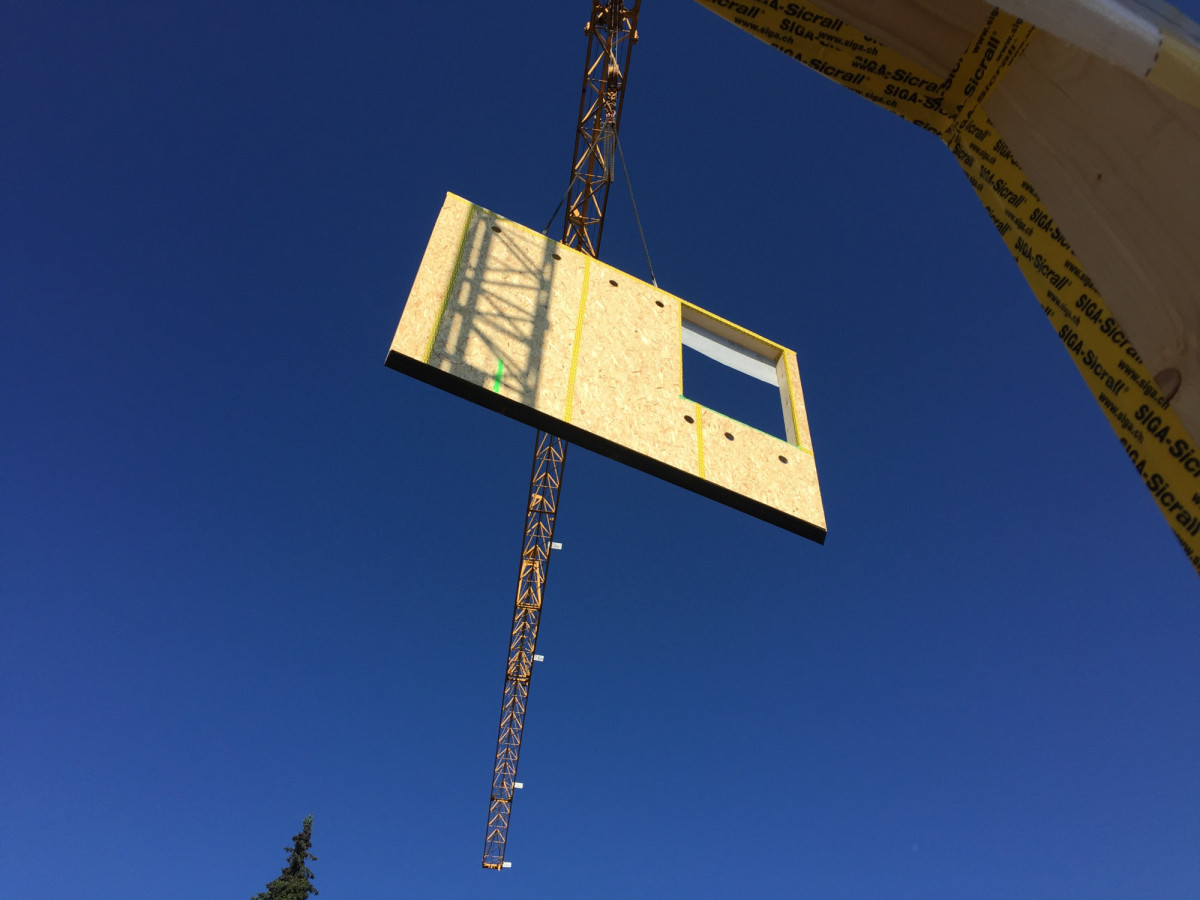 Durch die vorgefertigten Holzständerwände mit Holzfaserdämmung und die Brettsperrholzdecken konnte die Bauzeit deutlich reduziert werden. Eine einheitliche Trapezblechhülle bildet den Witterungsschutz für den Holzbau. Eine bronzene Eloxalfarbe und die Lochung in der Fassade spielen mit dem wechselnden Licht der Tageszeiten.