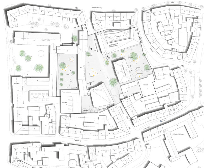 Vorgeschlagen wird, städtebauliche Ergänzungen gezielt und konzentriert an zwei Standorten vorzunehmen. Besonderer Wert wird hierbei auf die maßstäbliche und stadträumliche Einbindung der Ergänzungsbauten zum Bestand gelegt.