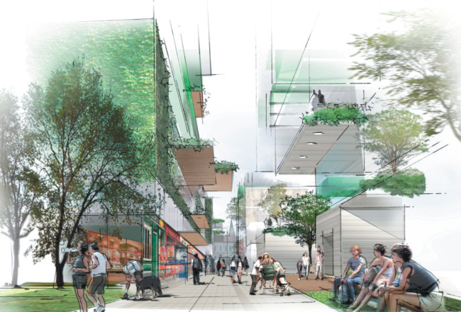 Die Wohnbebauung besteht aus individuellen, zentrierten Ouartiershäusern, welche jeweils eine eigene überschaubare Nachbarschaft bilden, mit der sich die Bewohner identifizieren können. Die in sich dichte und kompakte Anordnung der Baukörpereinheiten, ermöglicht die Schaffung großzügiger Freiräume in den Innenhöfen.