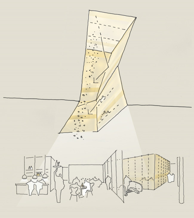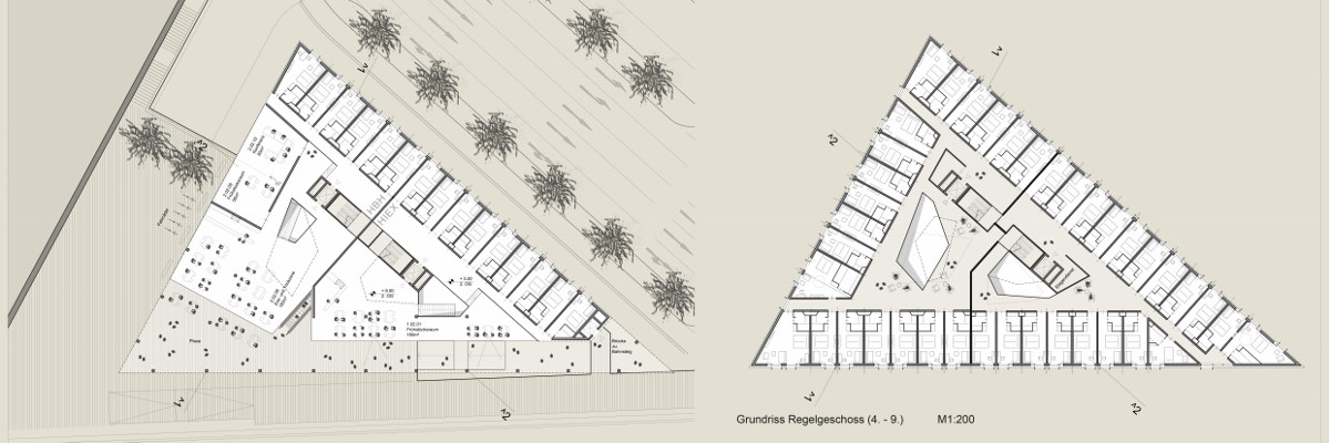 Das Preisgericht lobt das vielseitige komplexe Angebot von innenräumlichen und städtebaulichen Qualitäten des Entwurfs. Diese Vielschichtigkeit wird in Bezug auf eine ökonomische Umsetzbarkeit in Beziehung zum konkreten Betreiberkonzept kritisch hinterfragt.