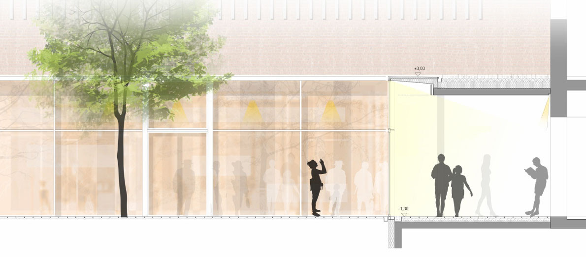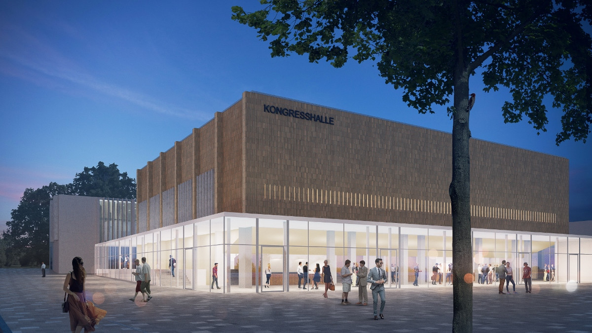 Die gläserne, transparente Erweiterung des Foyers macht das Haus offen und einladend. Die Kongresshalle mit seiner besonderen Kubatur bleibt erhalten und sowohl im Innern als auch von außen betrachtet präsent und erlebbar.